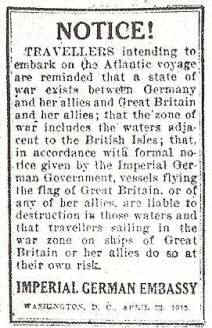 On 7 May 1915 British Liner RMS Lusitania sunk carrying American