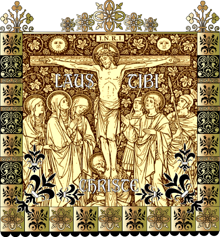 [P] Per ómnia sæcula sæculórum. Vere dignum et iustum est, æquum et salutáre, nos tibi semper et ubíque grátias ágere: Dómine, sancte Pater, omnípotens ætérne Deus: Qui salútem humáni géneris in ligno Crucis constituísti: ut unde mors oriebátur, inde vita resúrgeret: in quo ligno vincébat, in ligno quoque vincerétur: per Christum Dóminum nostrum. Per quem majestátem tuam laudant Angeli, adórant Dominatiónes, tremunt Potestátes. Cæli cælorúmque Virtútes, ac beáta Séraphim, sócia exsultatióne concélebrant. Cum quibus et nostras voces, ut admítti júbeas deprecámur, súpplici confessióne dicéntes: