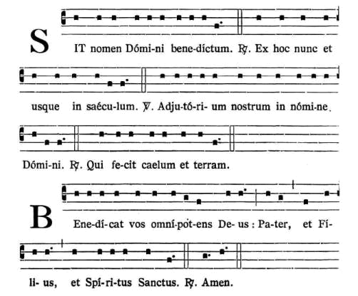 V. Ecce sic benedicétur omnis homo, qui timet Dóminum. Bene + dícat vos Dóminus ex Sion, ut videátis bona Jerúsalem ómnibus diébus vitæ vestræ, et habeátis vitam ætérnam.